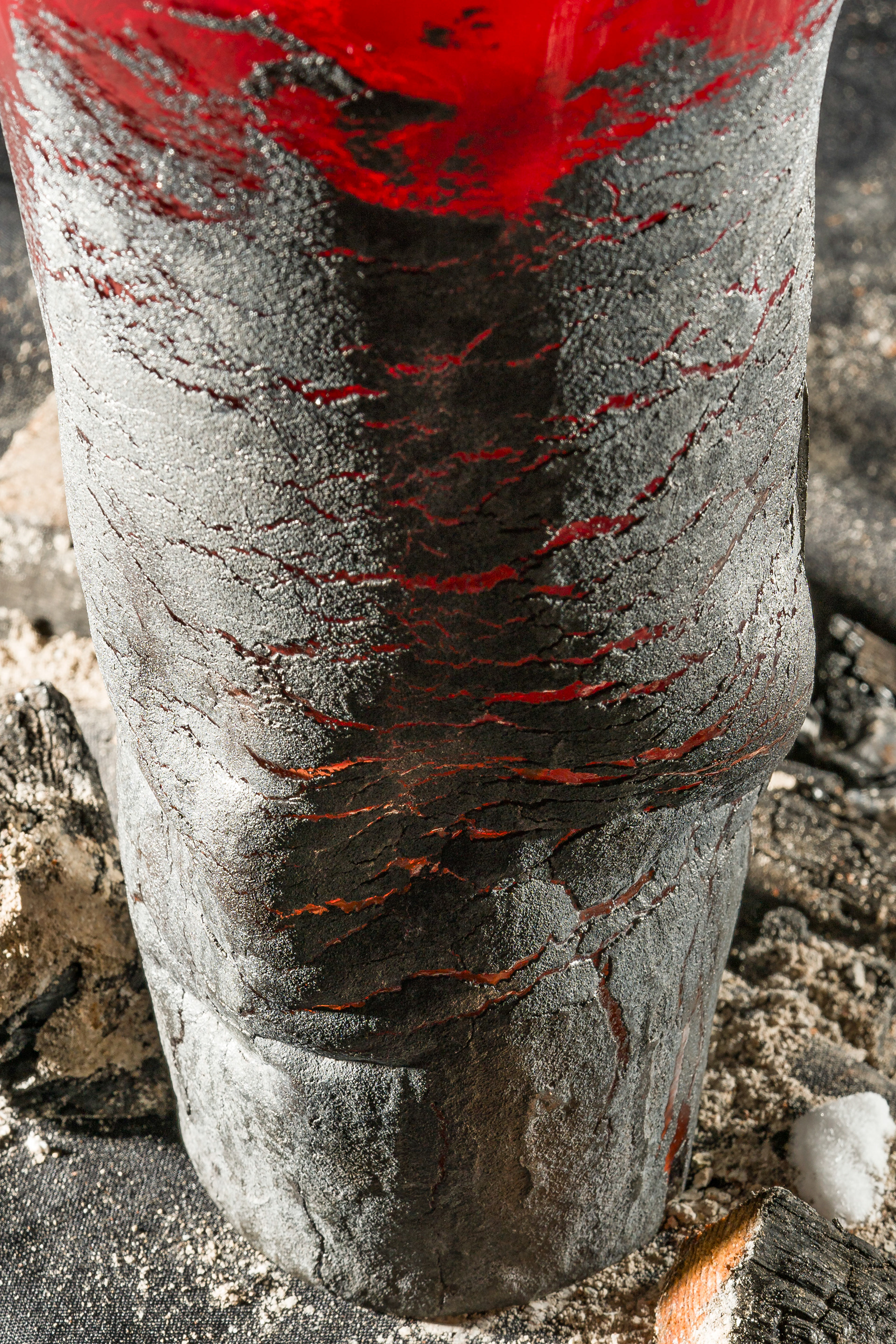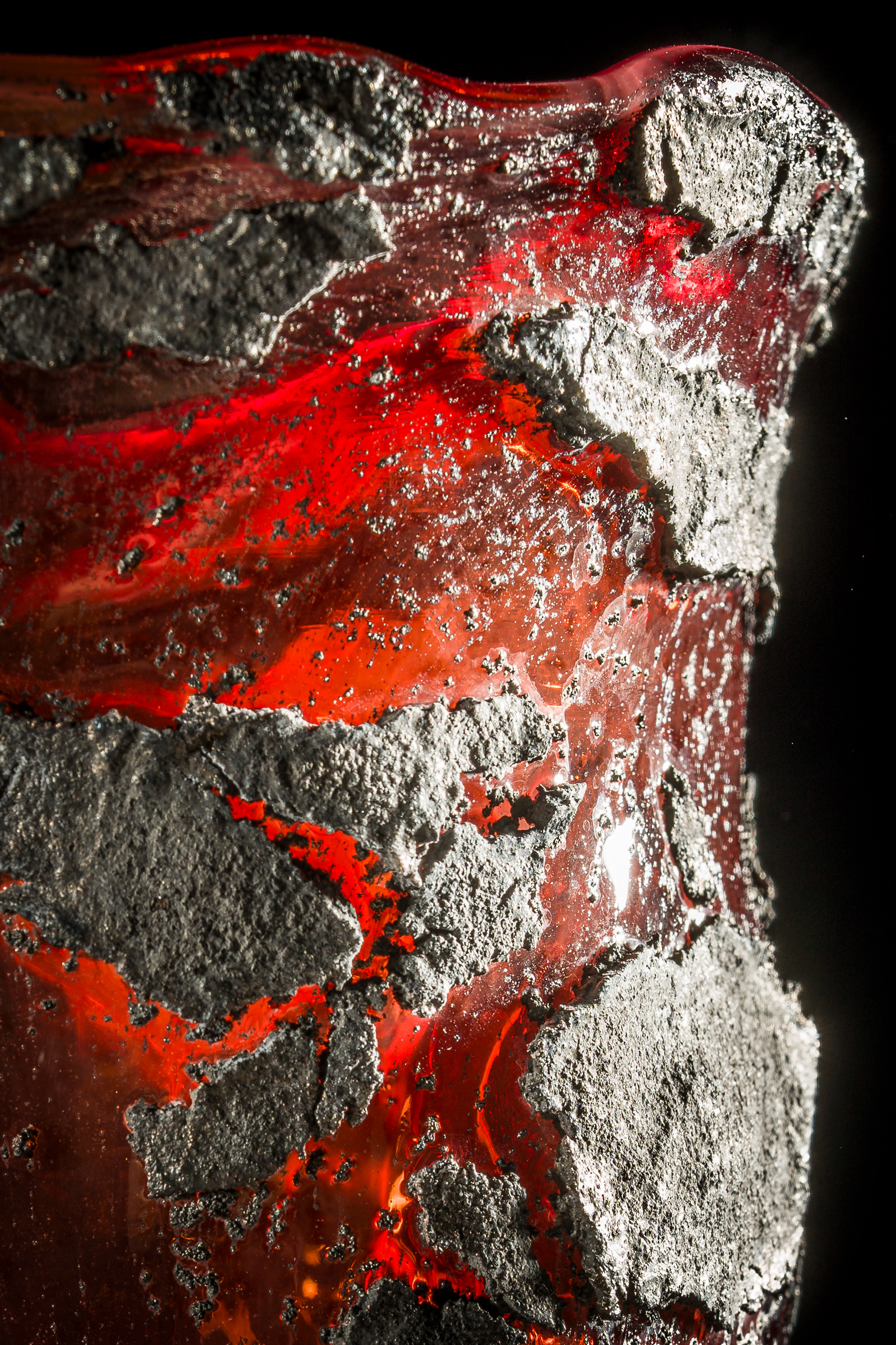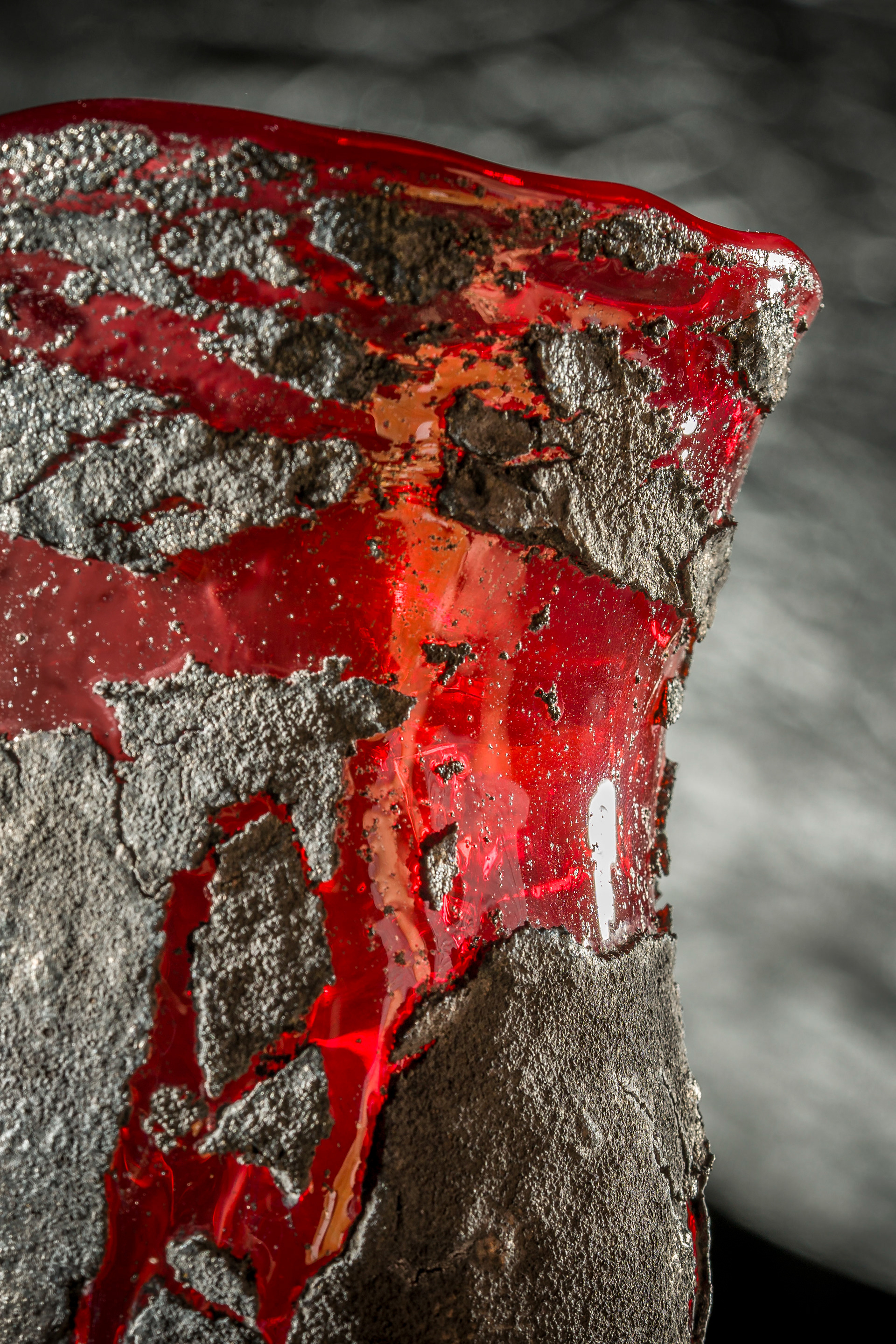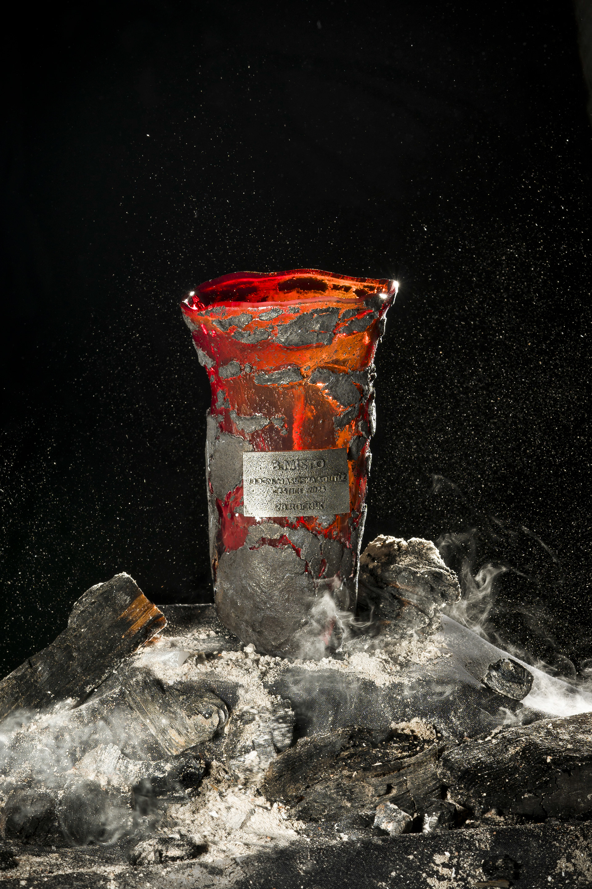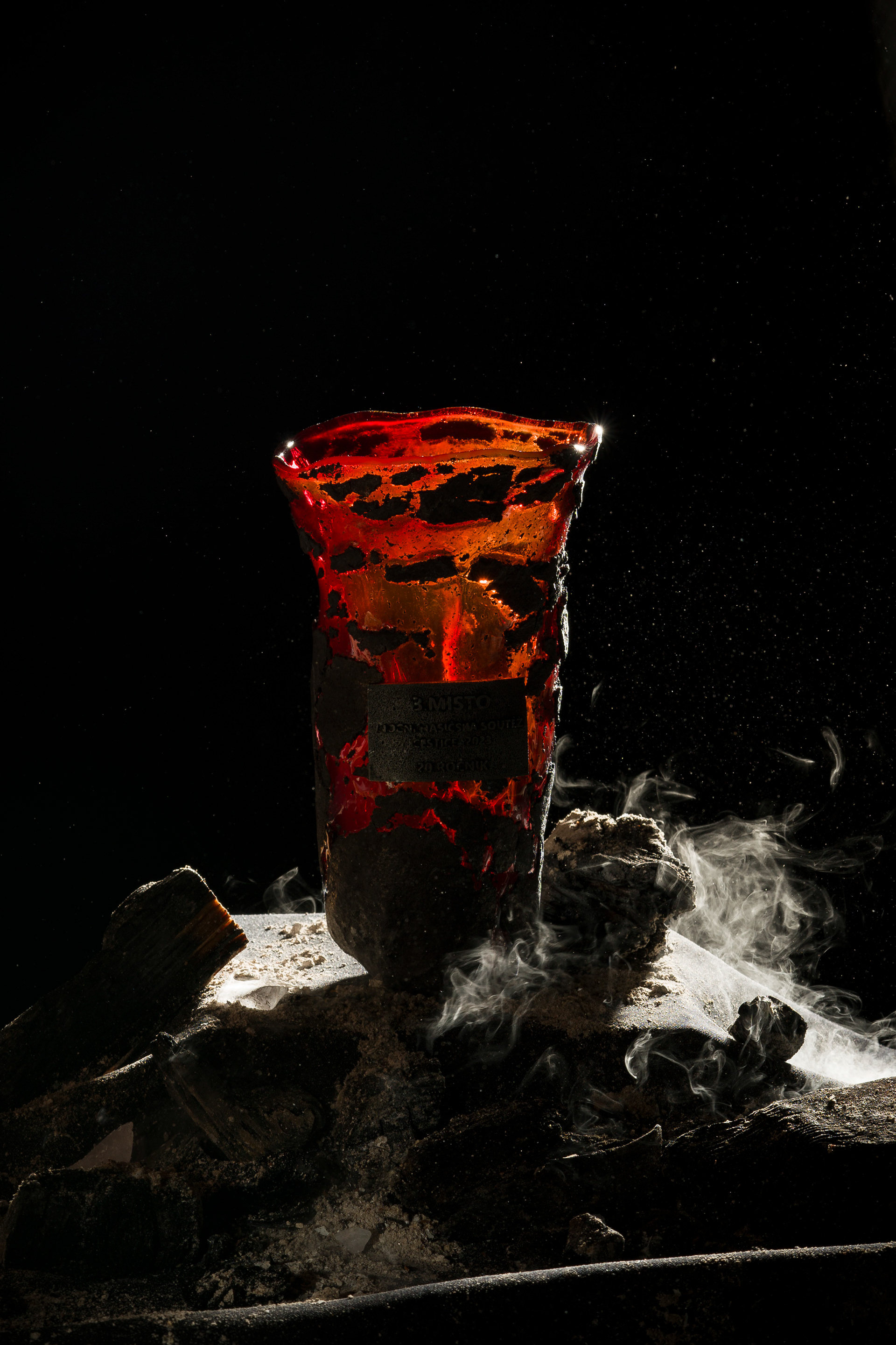 Zuzka se zhostila nelehkého úkolu vytvořit ceny pro hasičské závody v noci. Našla k tomu skvělou metaforu v ohnivě červeném skle obaleném v kovových pylinách.