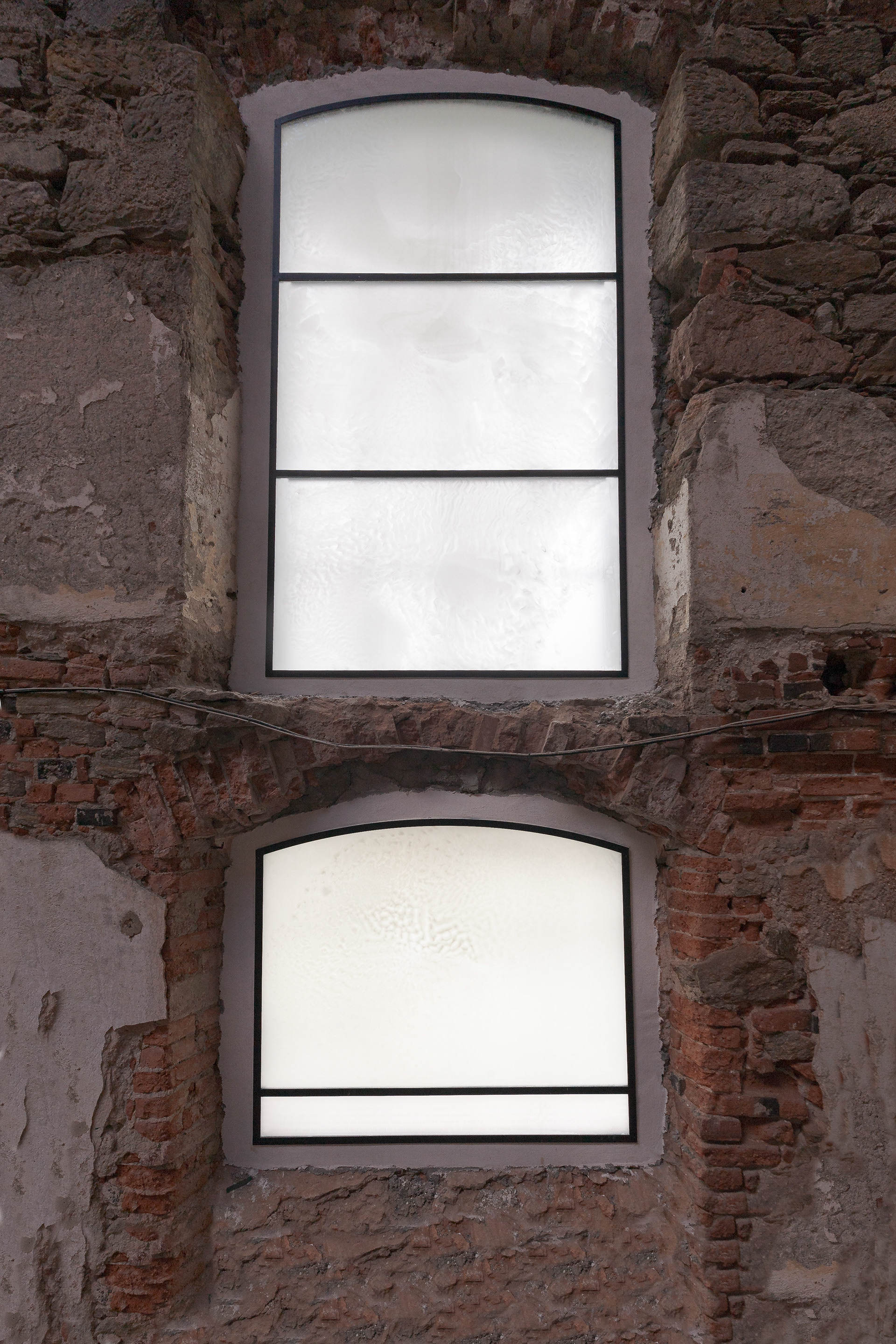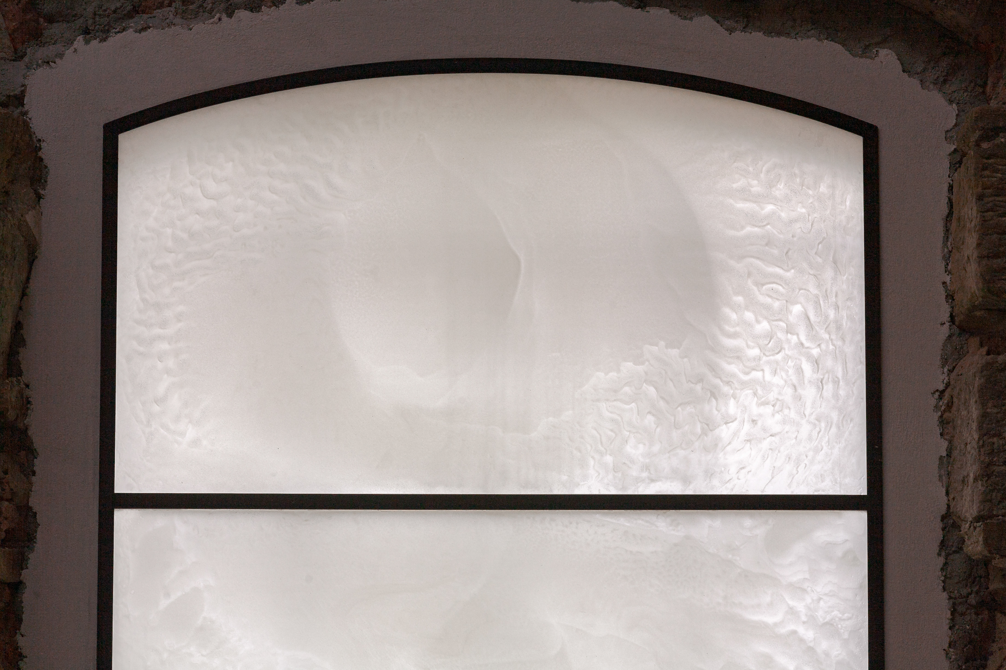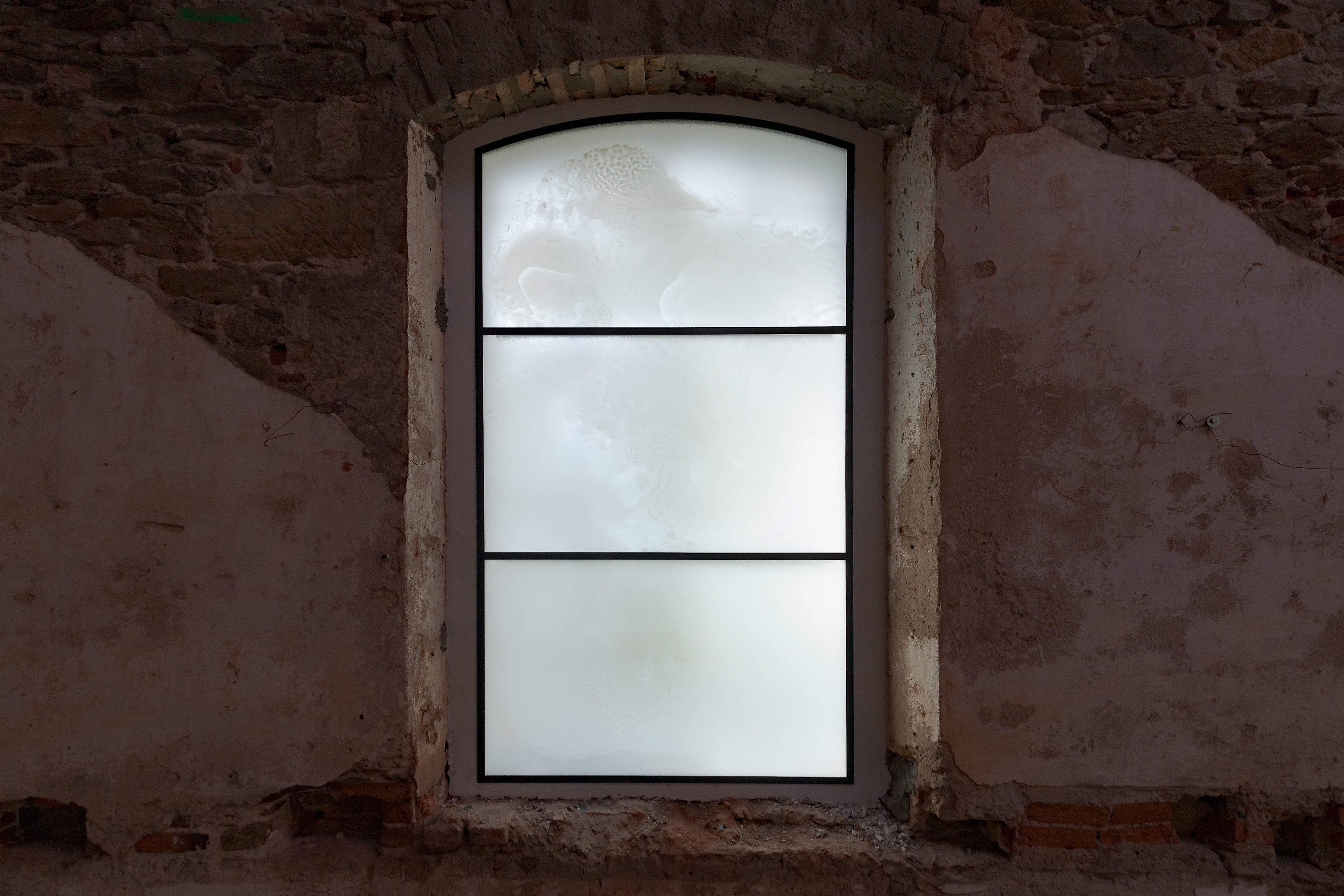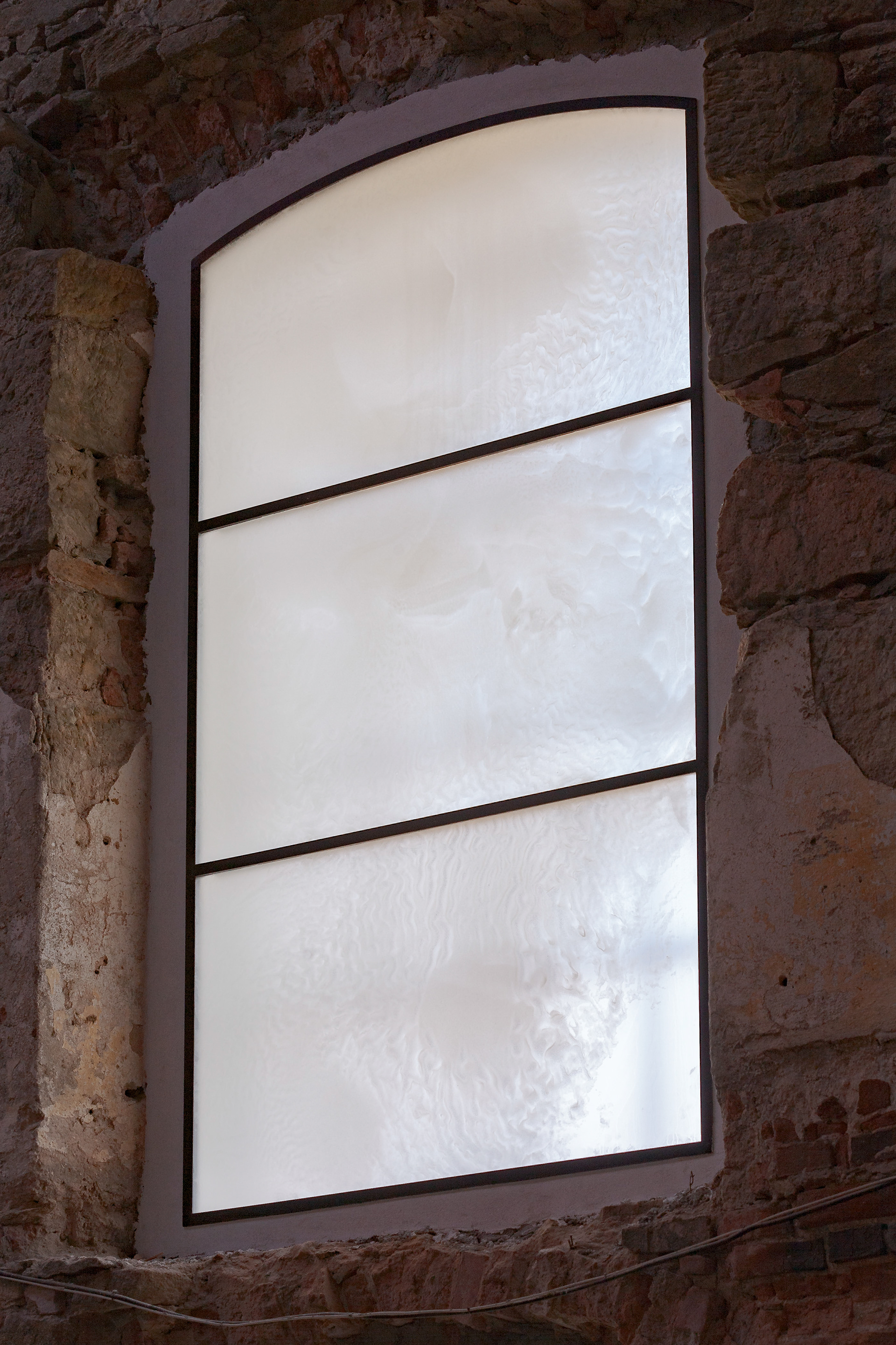 Vitrajenkostela se skleněnou střechou v Petrovicích od Lady Semecké, promítající v ten správný okamžik verše z Bible.