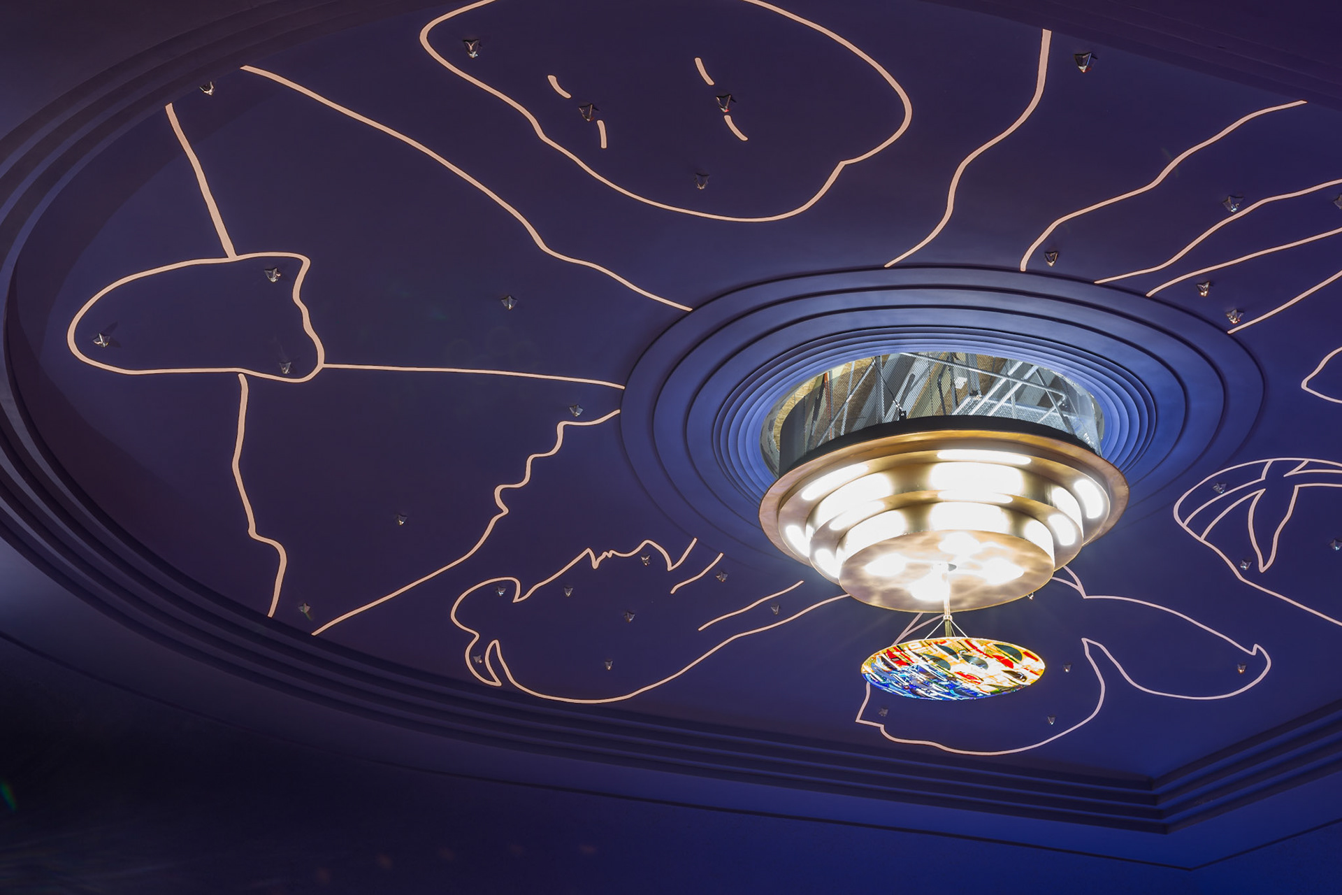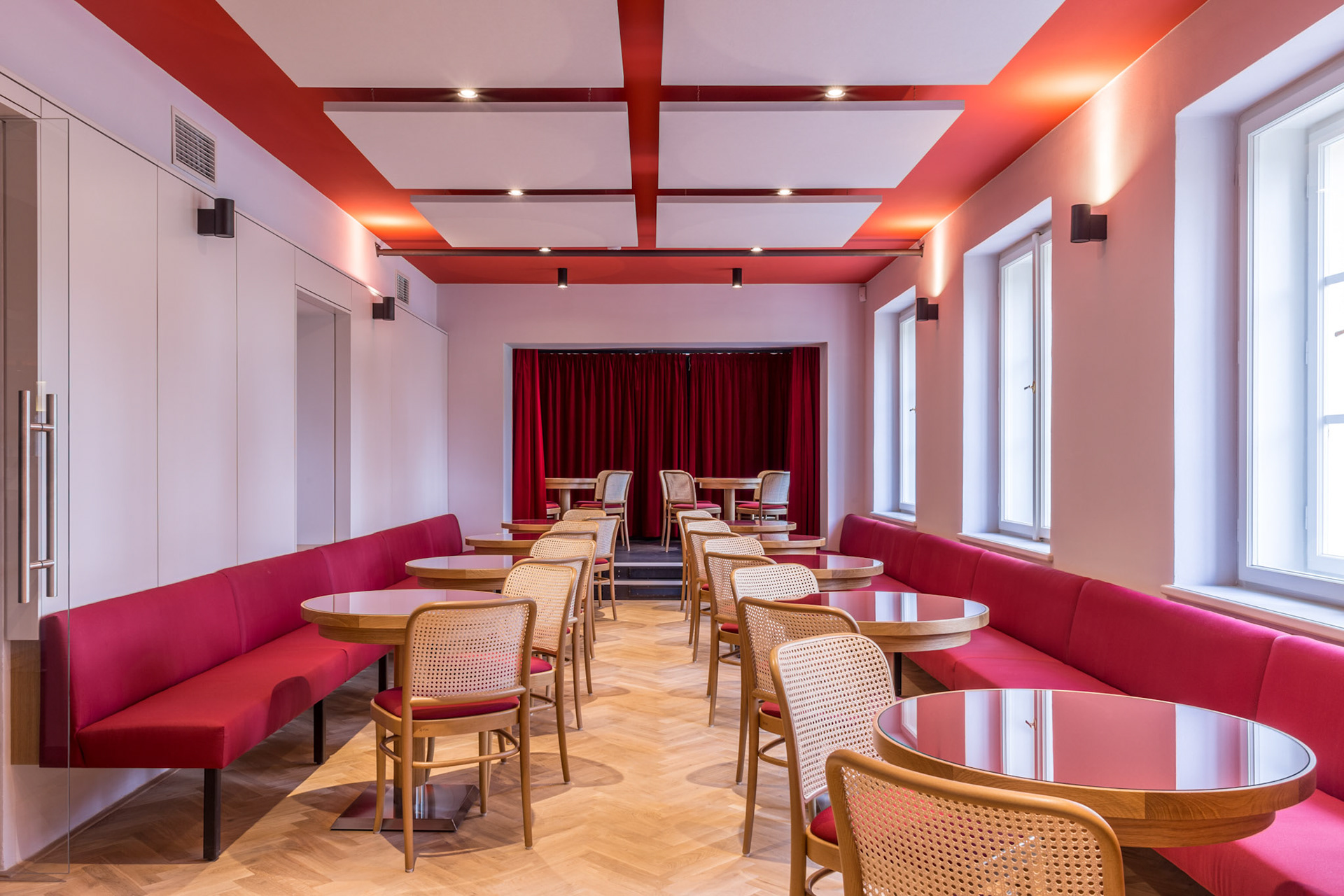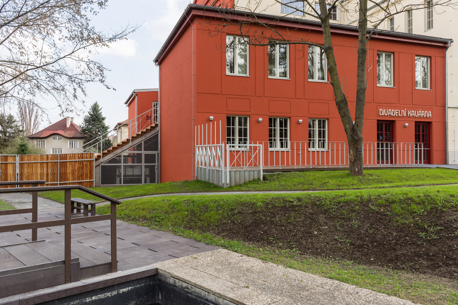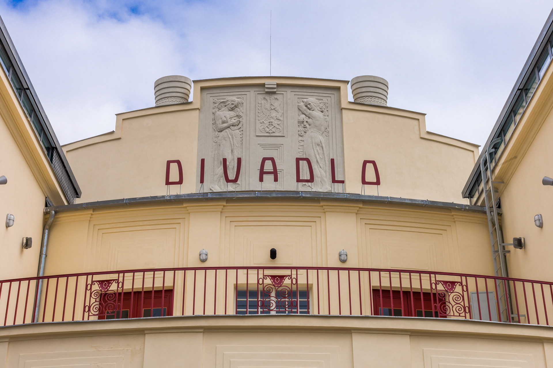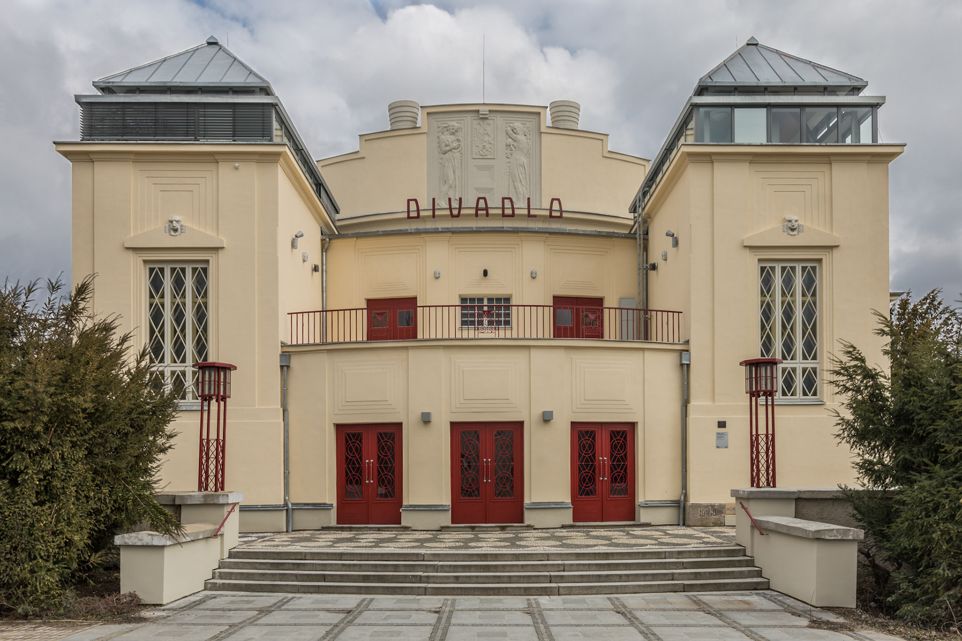 David Vávra a jeho ateliér revitalizovali městské divadlo v Kladně. Žluté části jsou původní, nové červené. Levá věž je sluneční, pravá zas měsíční, to reprezentuje i Slunce-Měsíc , lustr uprostřed hlavního sálu, protože do divadla vstupujeme za svitu slunce, a jdeme dom za svitu měsíce.